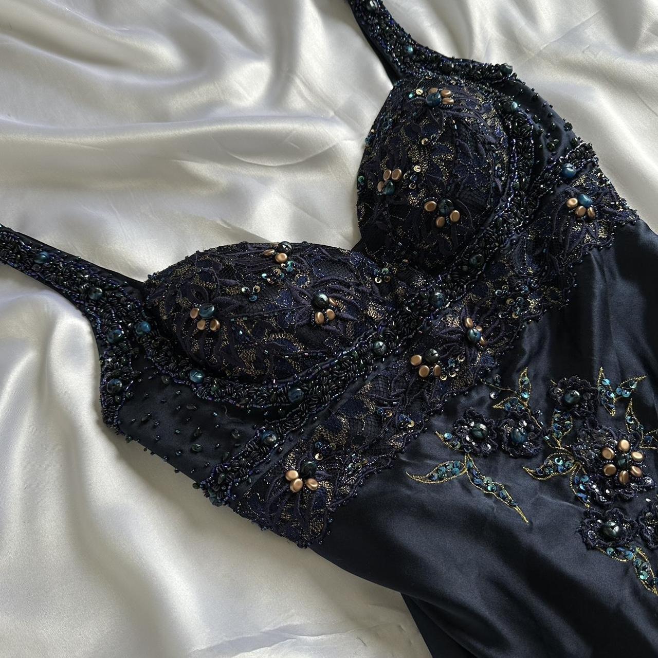 Dark Fairy Retro Navy Blue Fashion Elegant Beautiful Exquisite Gemstone Beaded Mid-Length Chiffon Ruffles Handmade Custom Prom Dress Evening Dress Party Dress Prom Dress gh3750