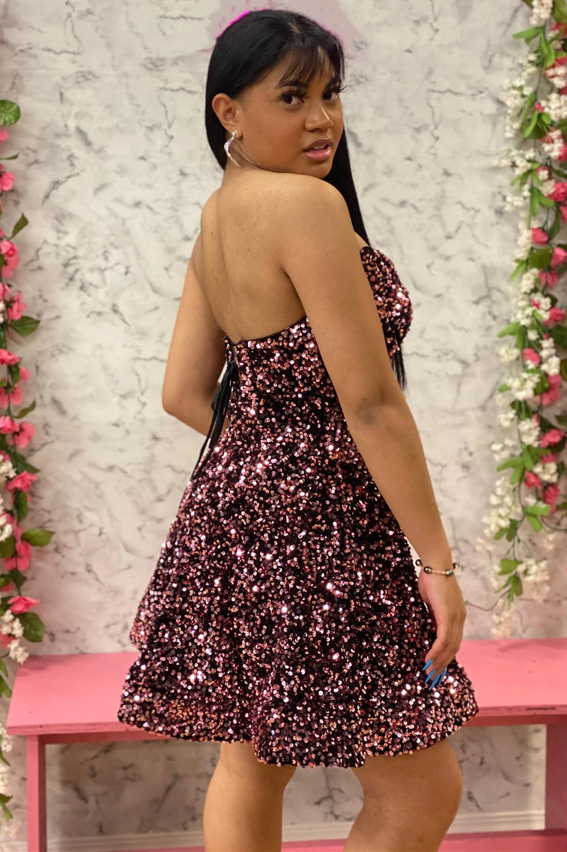 Dark Green Sequin Sweetheart A-Line Short Homecoming Dress gh1328