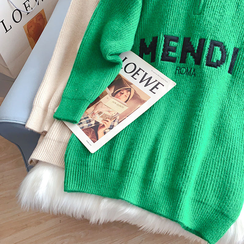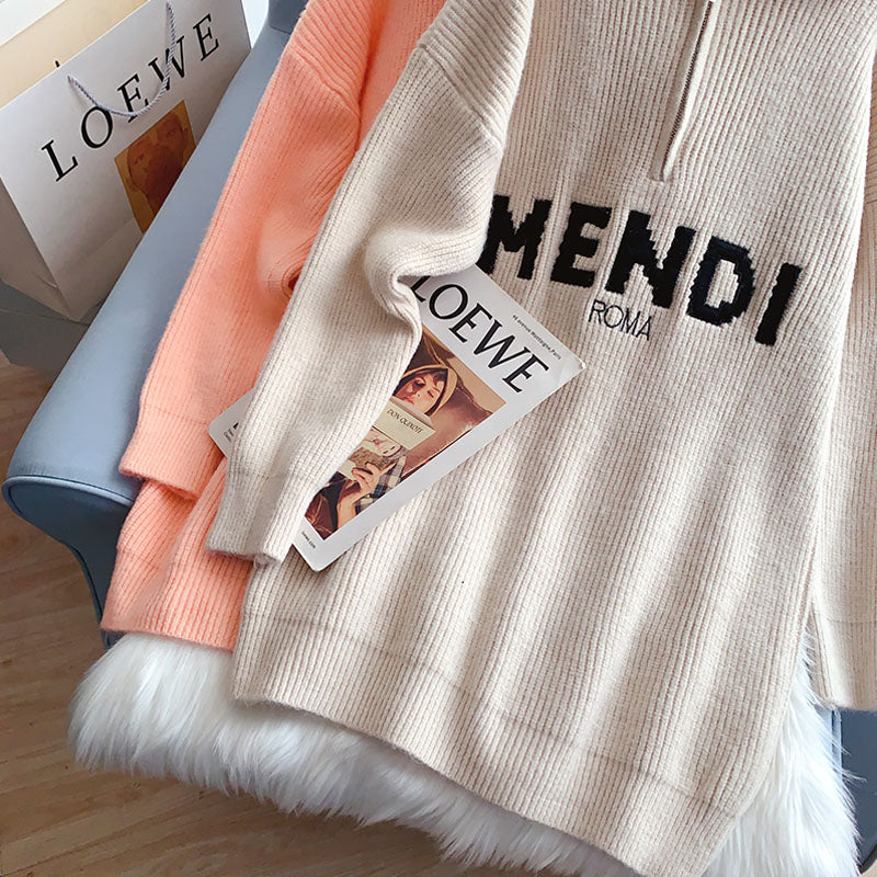 Design sense high neck zipper sweater head Lapel sweater 5195