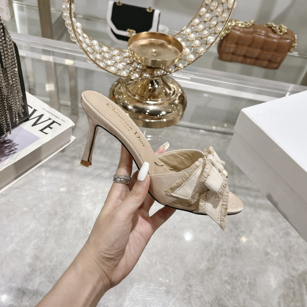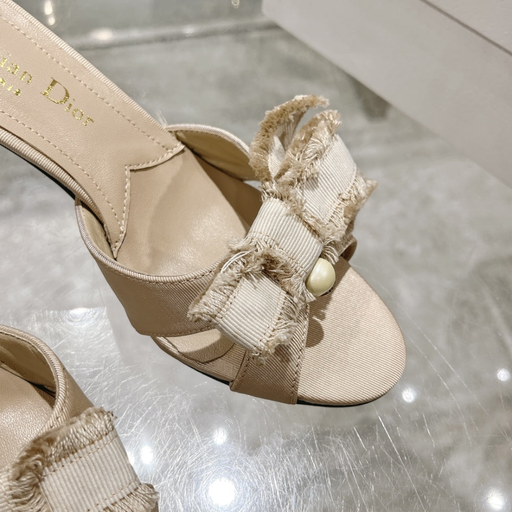 DIOR ADIORABLE HEELED SLIDE NUDE FRINGED GROSGRAIN KCO089GGN S12U