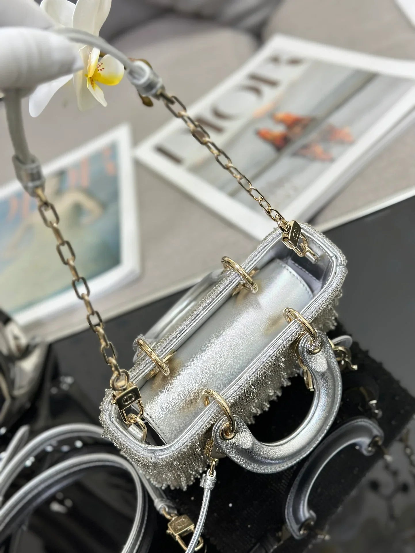 Dior LAdy D-Joy Silver-Tone Satin with Gradient Bead Embroidery - 16 x 9 x 5 cm
