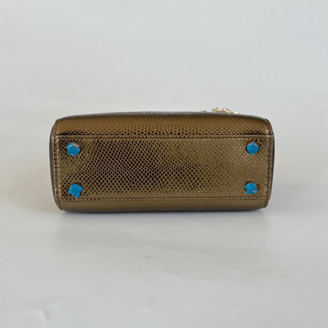 Dior Mini Lady Lizard Print Chain Shoulder Bag Metallic Gold