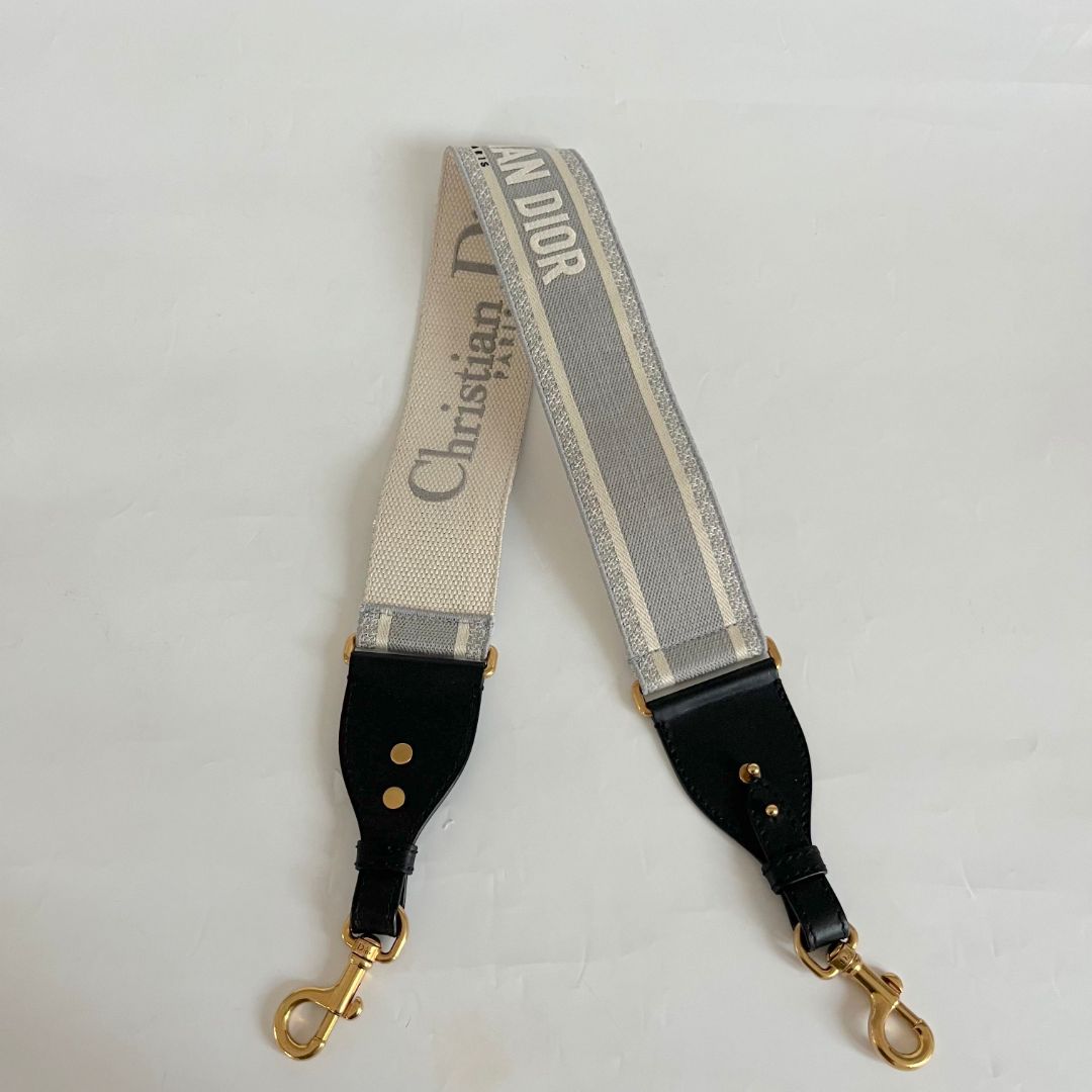 Dior White Leather Saddle bag with fabric strap with gold-tone hardware