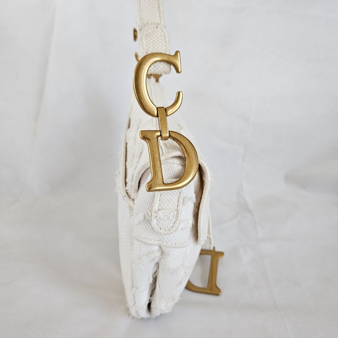 Dior White Patchwork Saddle bag with Bejeweled strap