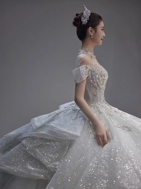 Dreamy Wedding Dress Ball Gown Off The Shoulder Sequin Wedding Dresses Bridal Gowns DP1808