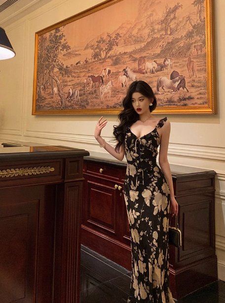 Elegant A line Black Floral Chiffon Sleeveless 21st Birthday Dress Party Gown Birthday Outfits Birthday Dress Ideas For Women DP1292