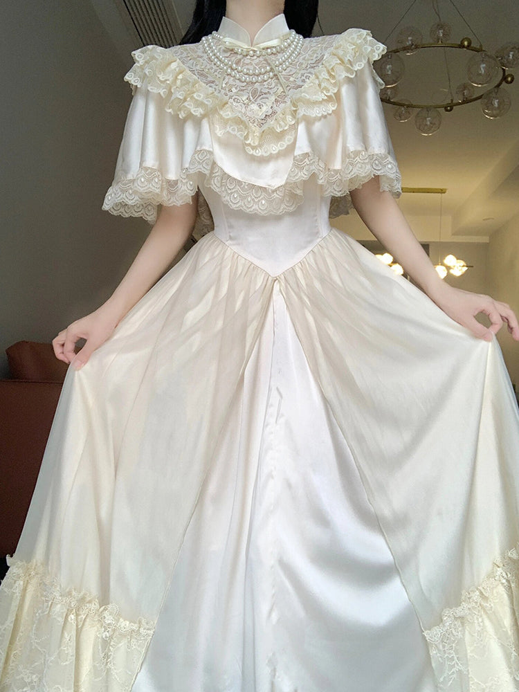 Elegant A line High Neckline Short Sleeves 16th Birthday Dress Lolita Dress White Birthday Outfits DP0214