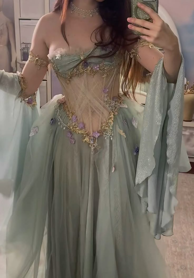 Elegant A Line Off The Shoulder Floor-length Tulle Long Sleeves Evening Dress Prom Dresses SD2022