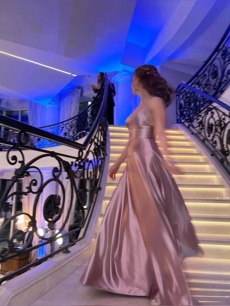 Elegant A Line Spaghetti Straps Satin Pink Long Birthday Dress Prom Dress Baddie Summer 20th Birthday Outfit DP1123