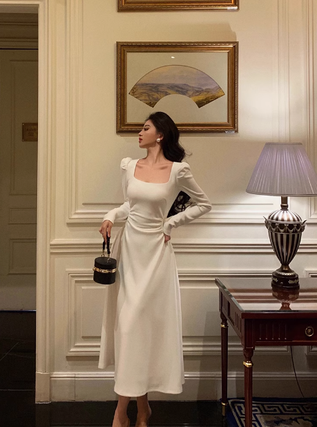 Elegant A Line Square Long Sleeves White 23rd Birthday Dress Party Gown Birthday Outfits Birthday Dress Ideas For Women DP1469