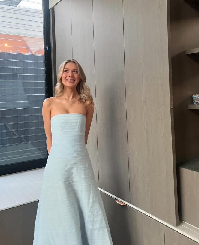 Elegant A Line Strapless Tiered Sky Blue Tulle Prom Dress Evening Dress SH1987