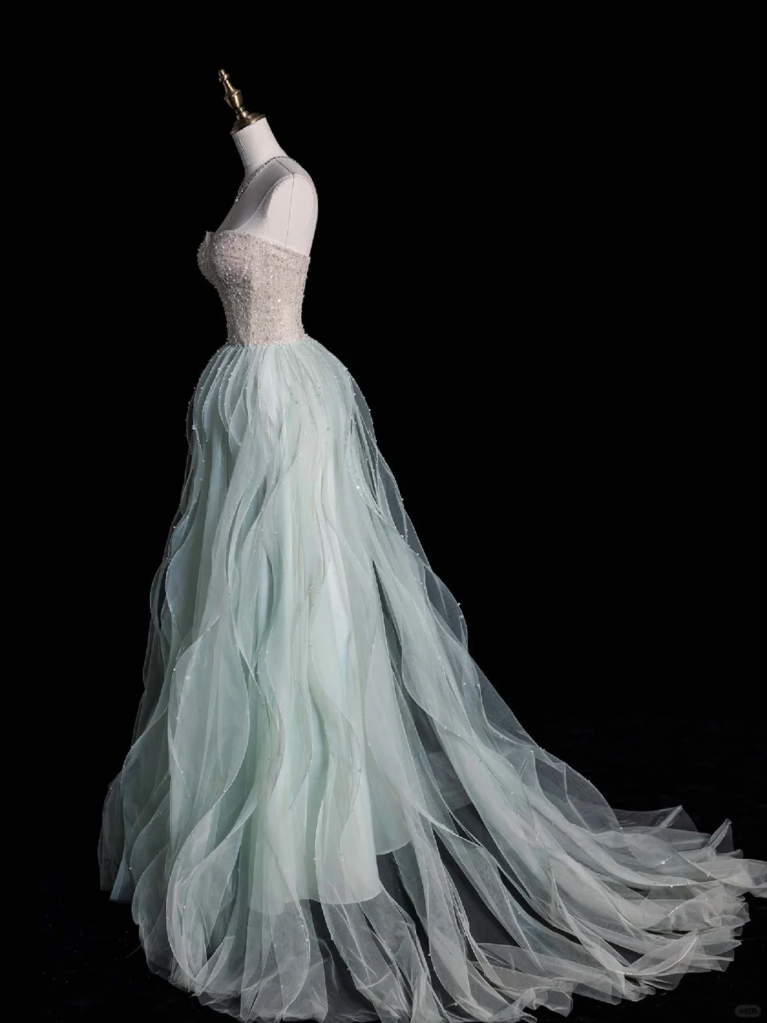 Elegant A Line Sweetheart Neck Sequin Beaded Mint Green Tulle Prom Dress Graduation Prom Dress SH2474