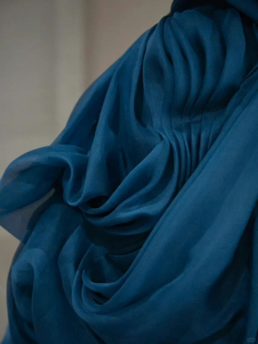 Elegant Blue One Shoulder Tulle Floor Length Wedding Dress P3054
