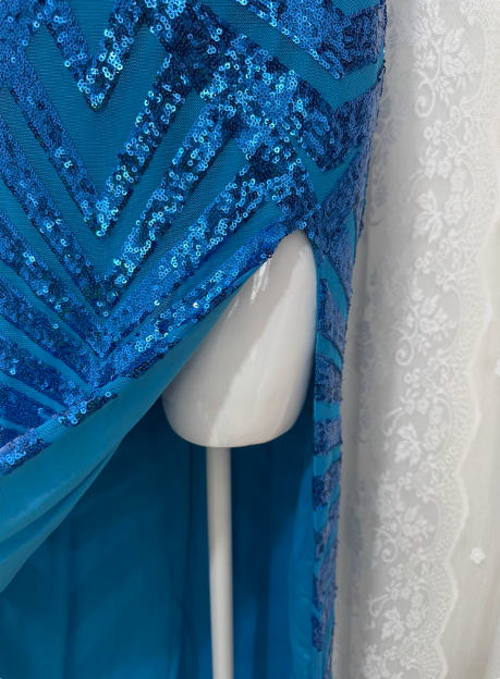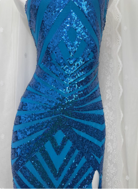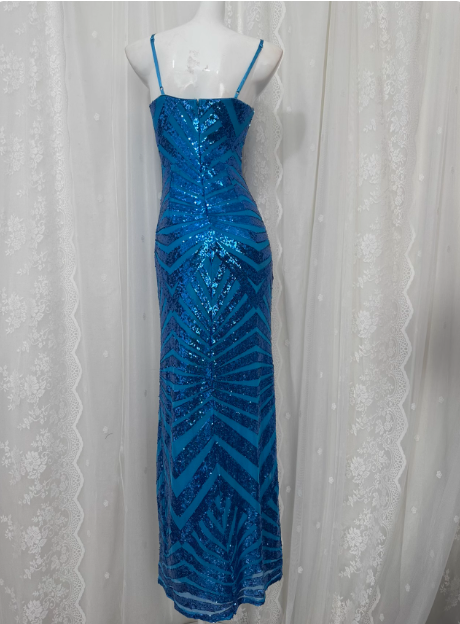 Elegant Blue Sequined Sling Slit Simple Long Prom Dress P3469