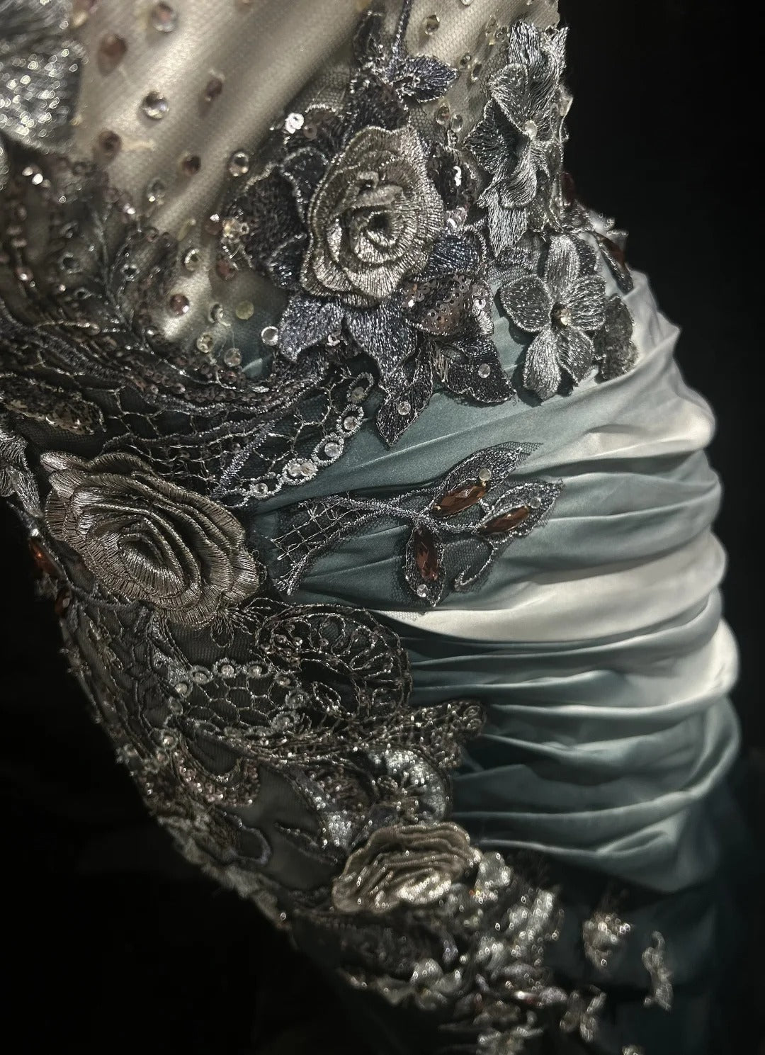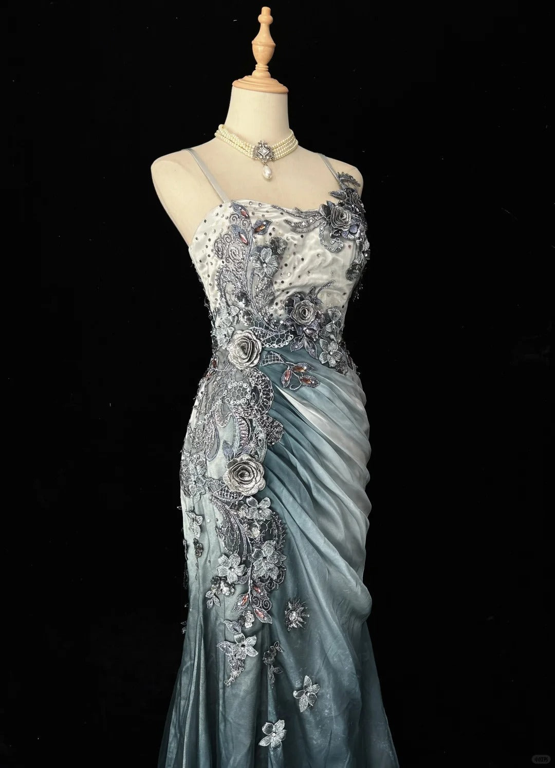 Elegant Chiffon Mermaid Spaghetti Strap Sequined Applique LongProm Dresses🎐 Unique Formal Evening Dresses