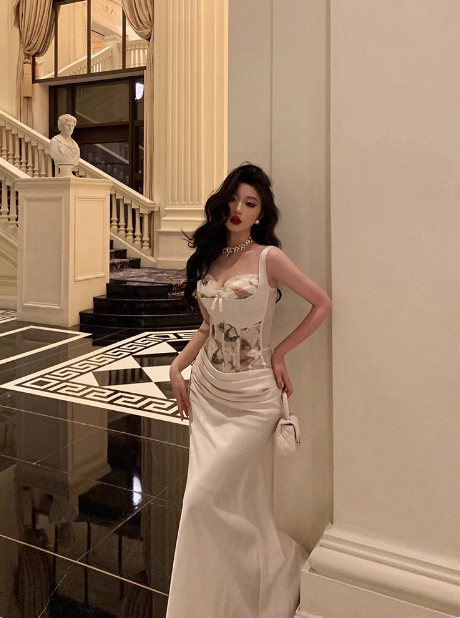 Elegant Mermaid 2 Pieces White Satin Sleeveless 21st Birthday Dresses Evening Gown Birthday Outfits Birthday Dress Ideas For Women DP1423
