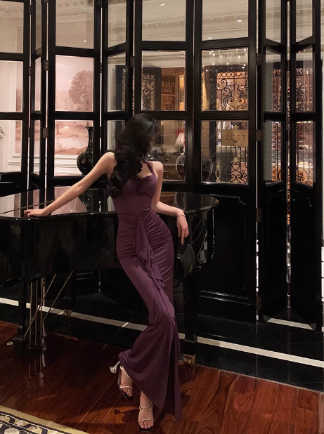Elegant Mermaid Halter Grape Sleeveless 23rd Birthday Dress Party Gown Birthday Outfits Birthday Dress Ideas For Women DP1465