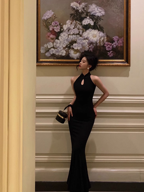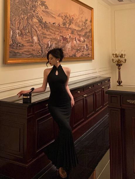 Elegant Mermaid High Neckline Black Sleeveless 23rd Birthday Dress Party Gown Birthday Outfits Birthday Dress Ideas For Women DP1425