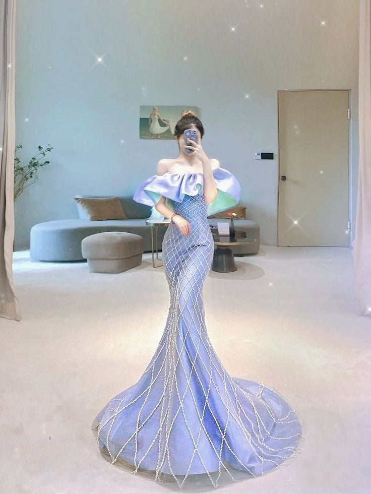 Elegant Mermaid Off The Shoulder Lilac Sequin Long Prom Dresses Party Dress Summer 20th Birthday Outfits 18th Birthday Dresses W1018