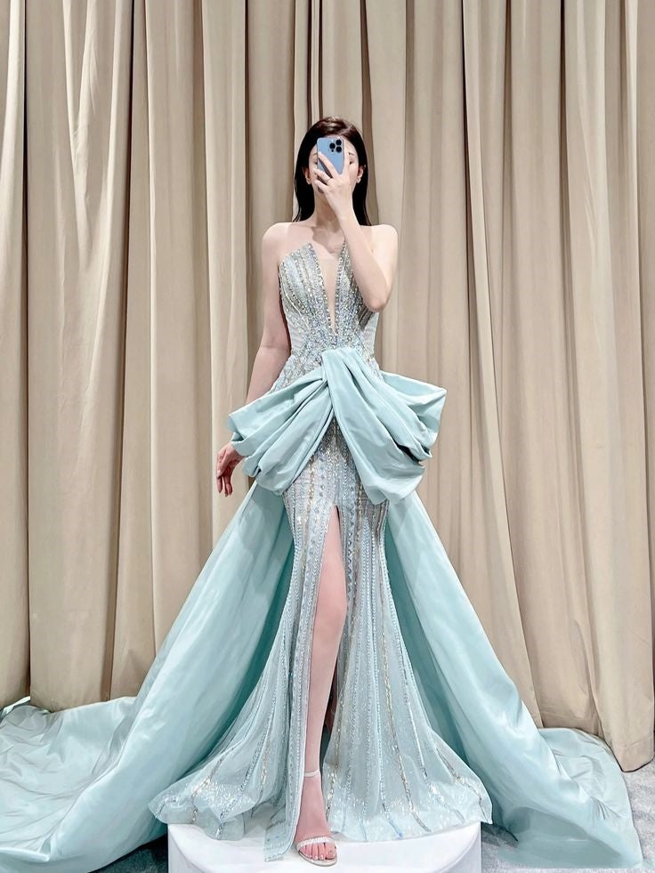 Elegant Mermaid Sequin Light Sky Blue Long Prom Dresses Party Dress Summer 20th Birthday Outfits 18th Birthday Dresses W1032