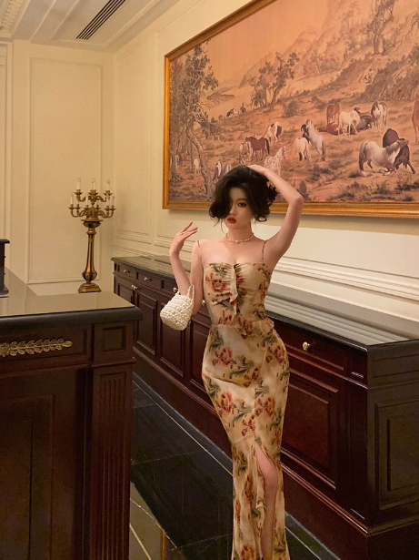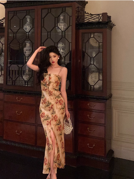 Elegant Mermaid Spaghetti Straps Floral Long 23rd Birthday Dress Party Gown Birthday Outfits Birthday Dress Ideas For Women DP1479