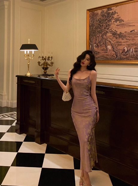 Elegant Mermaid Spaghetti Straps Grape 21st Birthday Dress Party Gown Birthday Outfits Birthday Dress Ideas For Women DP1441