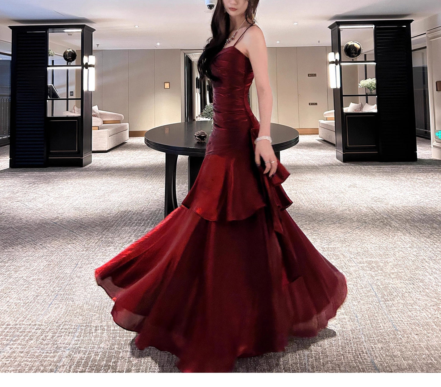 Elegant Mermaid Spaghetti Straps Sleeveless Dark Red Burgundy Long Evening Dress Prom Dresses DP231