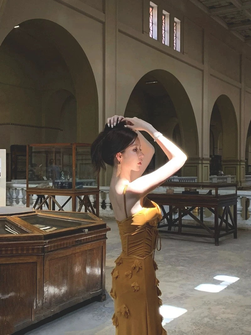 Elegant Mermaid Spaghetti Straps Sleeveless Long Evening Party Gowns Evening Formal Dresses Yellow Prom Dress W904