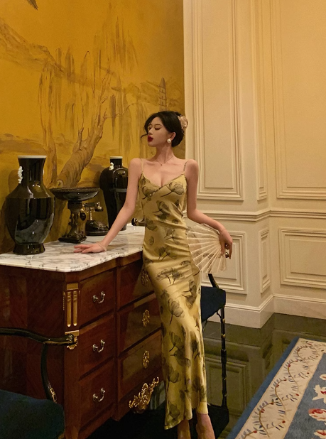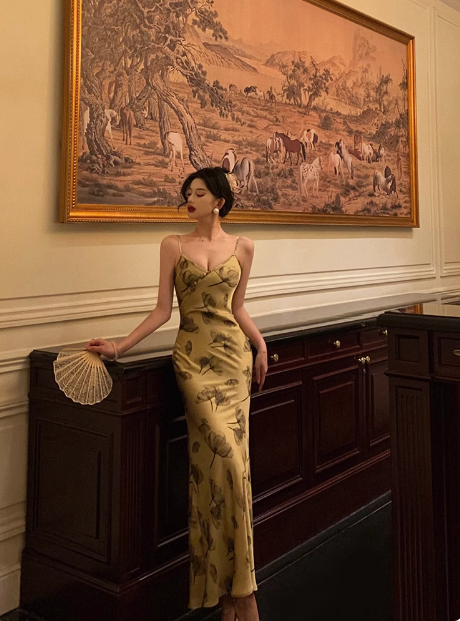 Elegant Mermaid Spaghetti Straps Yellow Floral Sleeveless 18th Birthday Dress Party Gown Birthday Outfits Birthday Dress Ideas For Women DP566