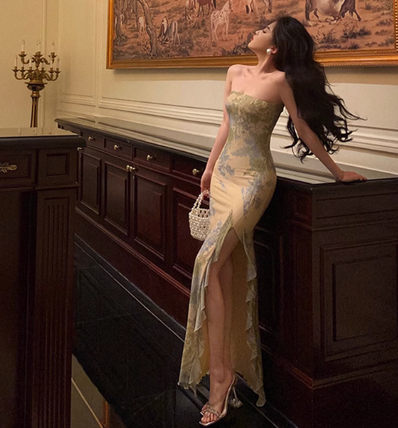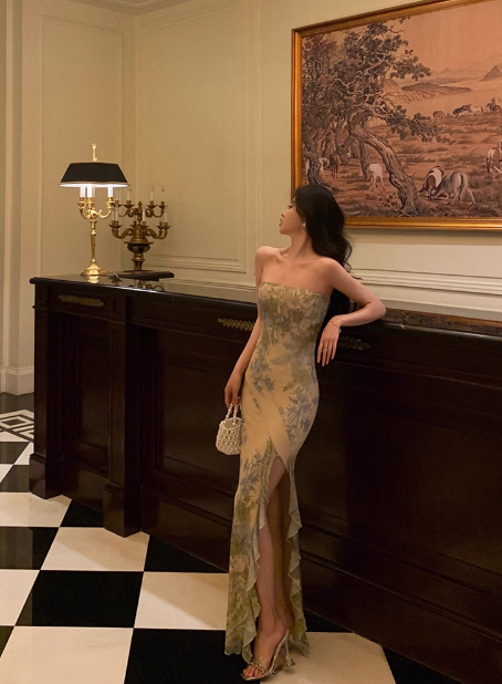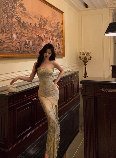 Elegant Mermaid Strapless Green Floral Sleeveless 21st Birthday Dress Party Gown Birthday Outfits Birthday Dress Ideas For Women DP1383