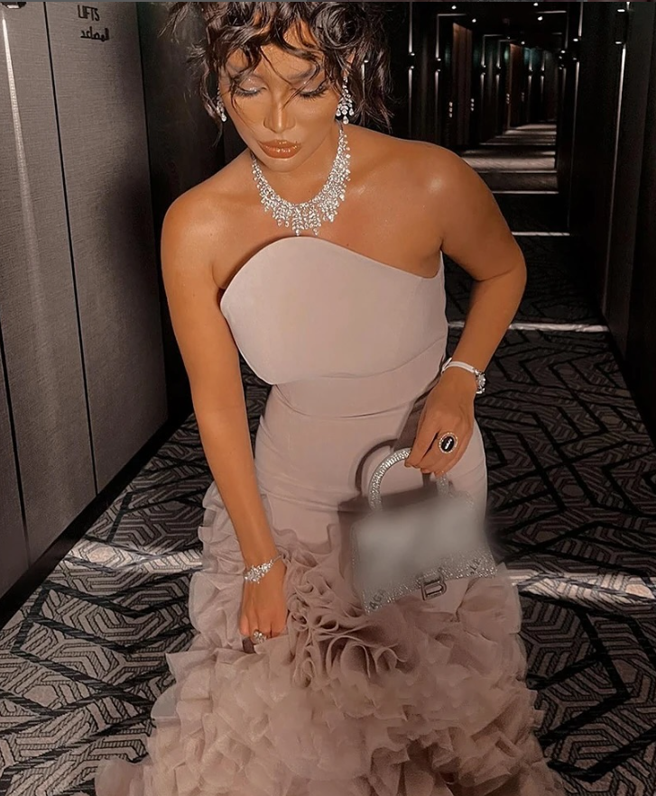 Elegant Mermaid Strapless Tiered Tulle Satin Long Prom Dress Evening Dress SH1948