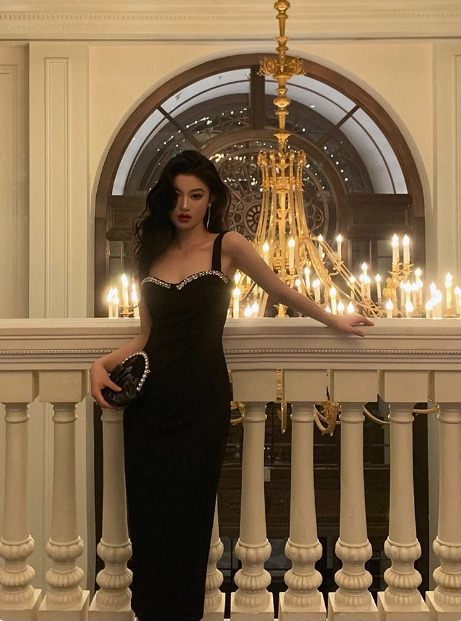 Elegant Mermaid Straps Black 23rd Birthday Dress Party Gown Birthday Outfits Birthday Dress Ideas For Women DP1637