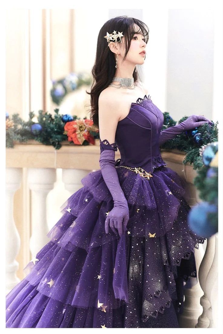 Elegant Purple A-Line Prom Dress Stars Love Elegant Lolita Party Dress fg5105