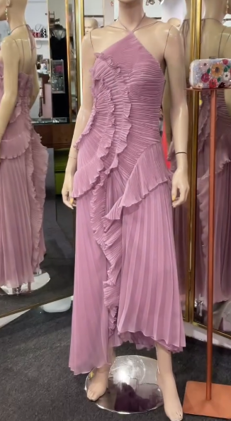 Elegant Purple Halter A-Line Chiffon Ruffles Long Prom Dresses Birthday Party Dress ED02931