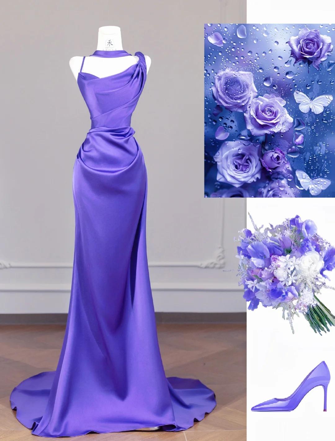 Elegant Purple Strap Mermaid Satin Backless Long Prom Dresses Formal Evening Gowns ED02311