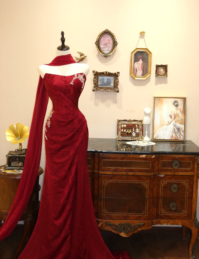 Elegant Red Strapless Mermaid Wedding Dress with Small Train P2770