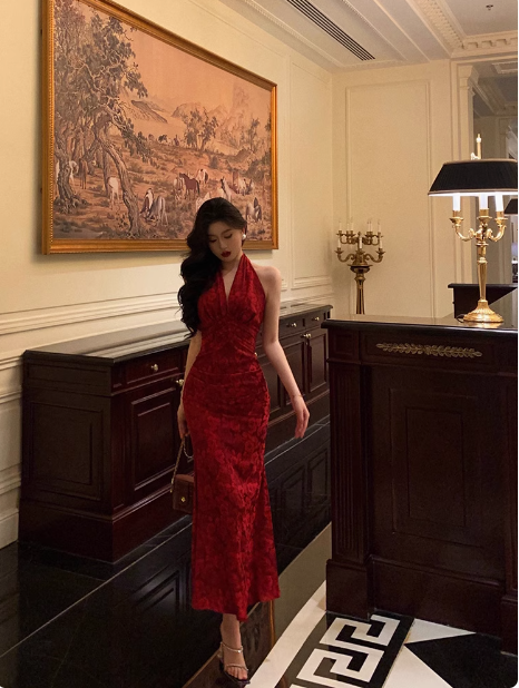 Elegant Sheath Halter Sleeveless Burgundy 21st Birthday Dress Party Gown Birthday Outfits Birthday Dress Ideas For Women DP1385