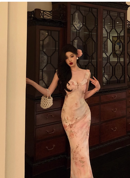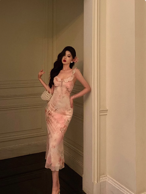 Elegant Sheath Pink Floral Chiffon 18th Birthday Dress Party Gown Birthday Outfits Birthday Dress Ideas For Women DP592