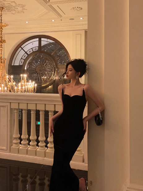 Elegant Sheath Spaghetti Straps Black 21st Birthday Dress Party Gown Birthday Outfits Birthday Dress Ideas For Women DP1412