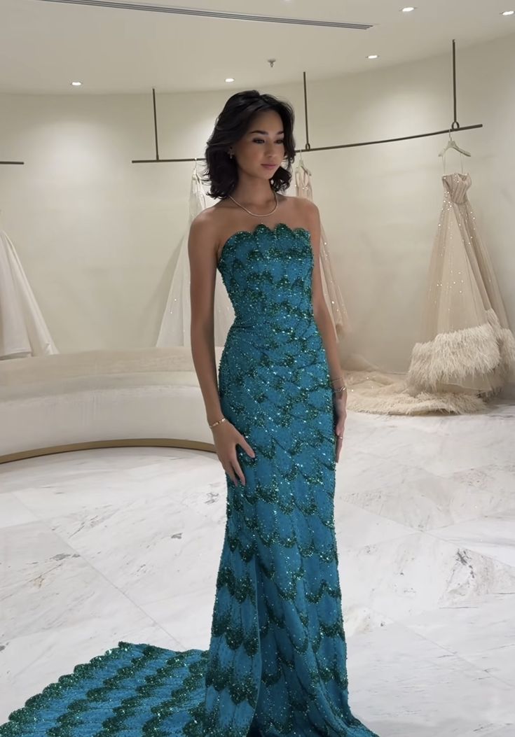 Elegant Sheath Strapless Blue Sequin Prom Dresses Party Dress Summer 22th Birthday Outfits 18th Birthday Dresses DH1584