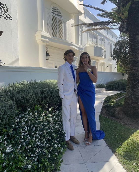 Elegant Sheath Strapless Royal Blue Slit Prom Dresses Formal Dress P1126