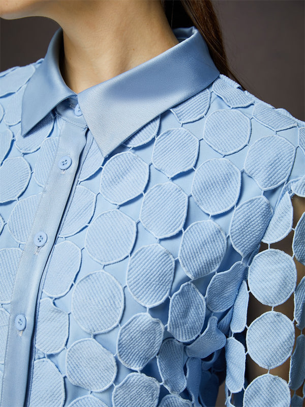 Elegant Shirt Collar Three Quarter Sleeve Lace Maxi Dress