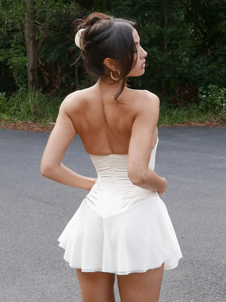 loveedsTM- Elegant Strapless Lace Up Corset Mini Dress Party Club Outfit for Women Hot Sexy Sheath Backless Dresses 2024 Summer Clothes