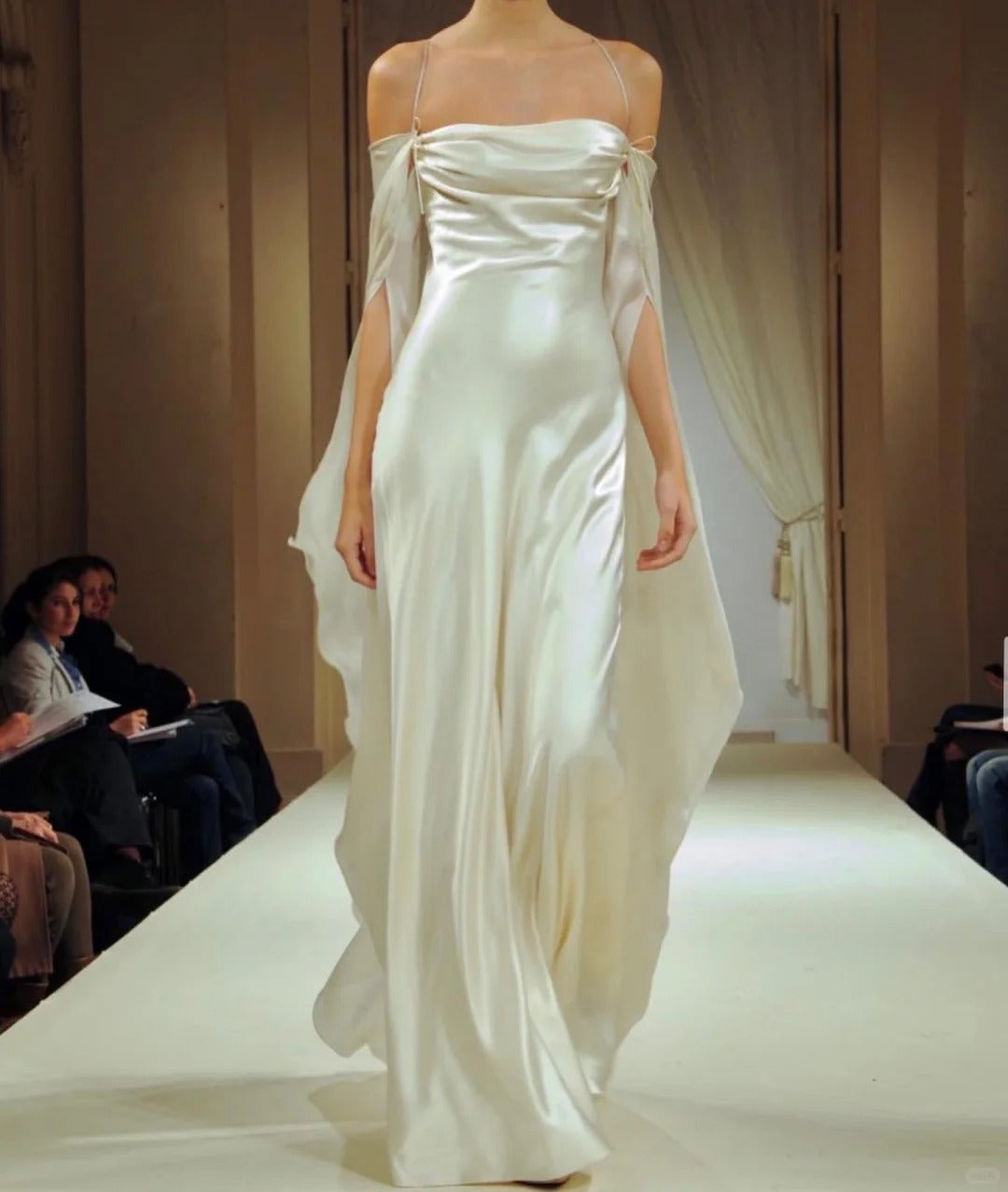 Elegant White Spaghetti Straps Sheath Satin Long Prom Dresses Formal Evening Dresses with Open Back ED03019