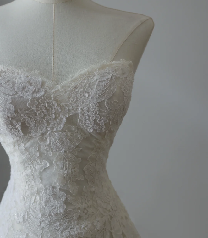 Elegant White Strapless Lace Tulle A-Line Wedding Dress P2563