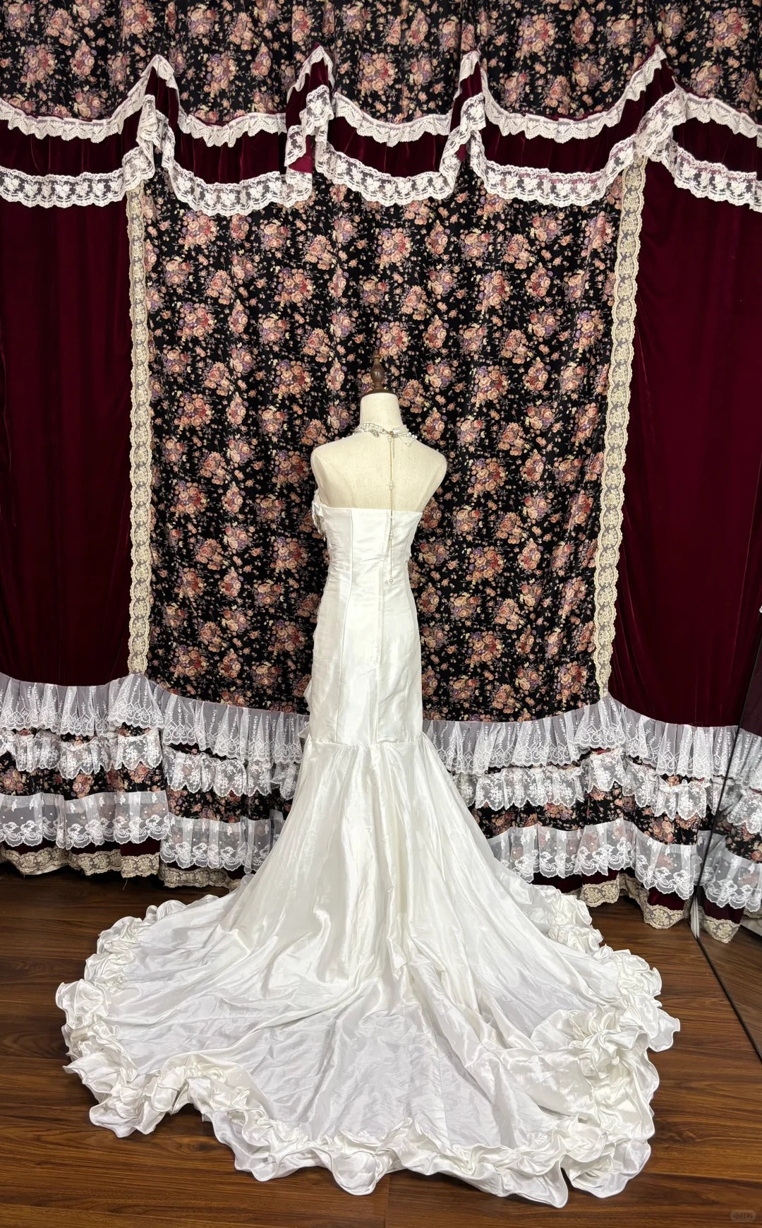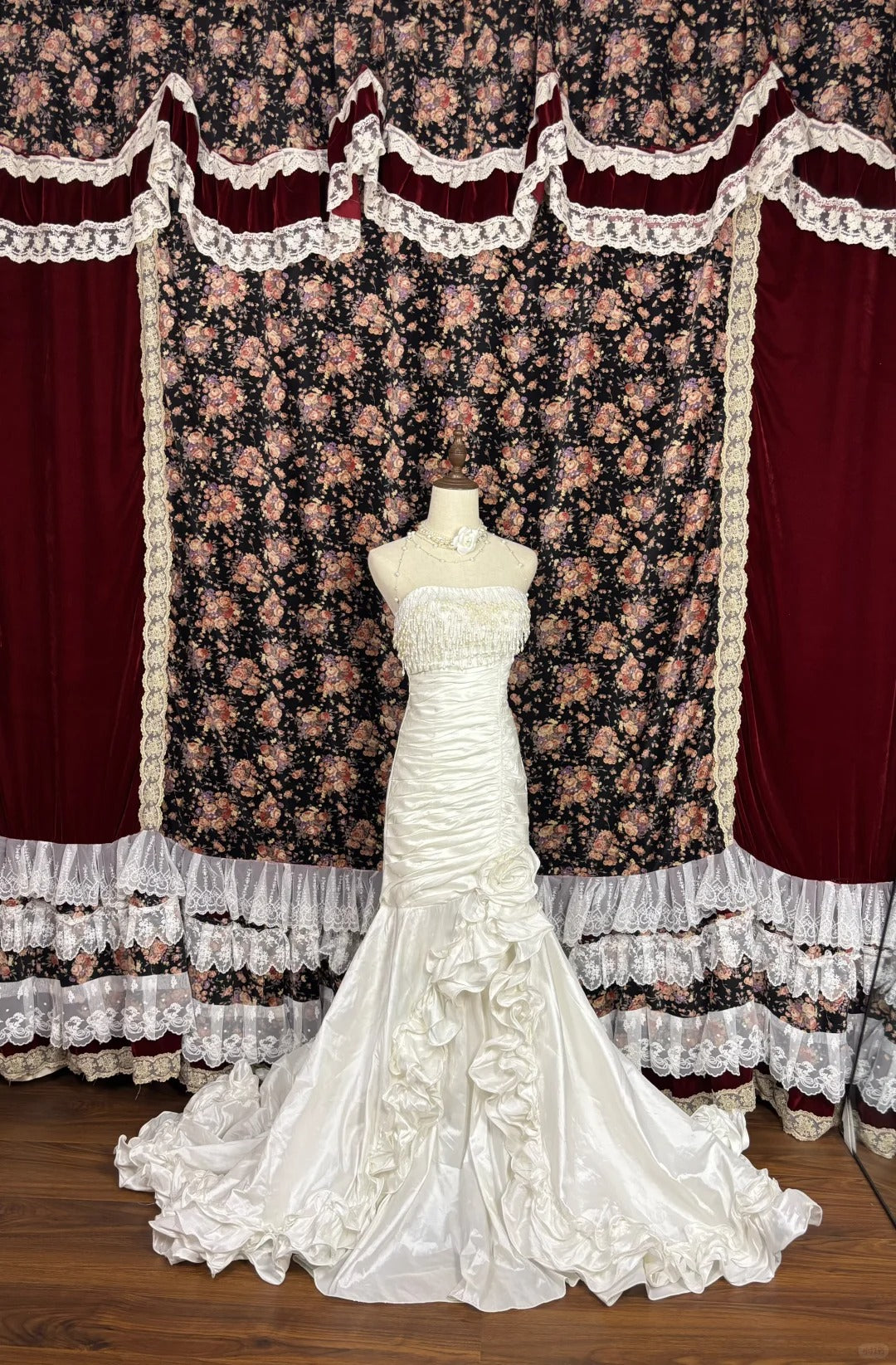 Elegant White Strapless Tassel Satin Ruffled Mermaid Wedding Dress P2982