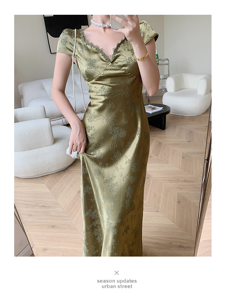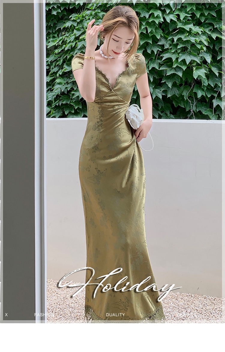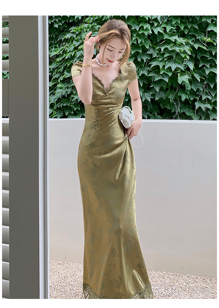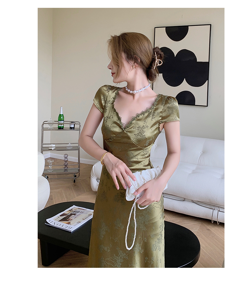loveedsTM- Elegant Women Green Satin Backless Evening Dress Ladies Lace Bandage Vintage Jacquard Mixi Dresses Party Vestidos Summer Robe