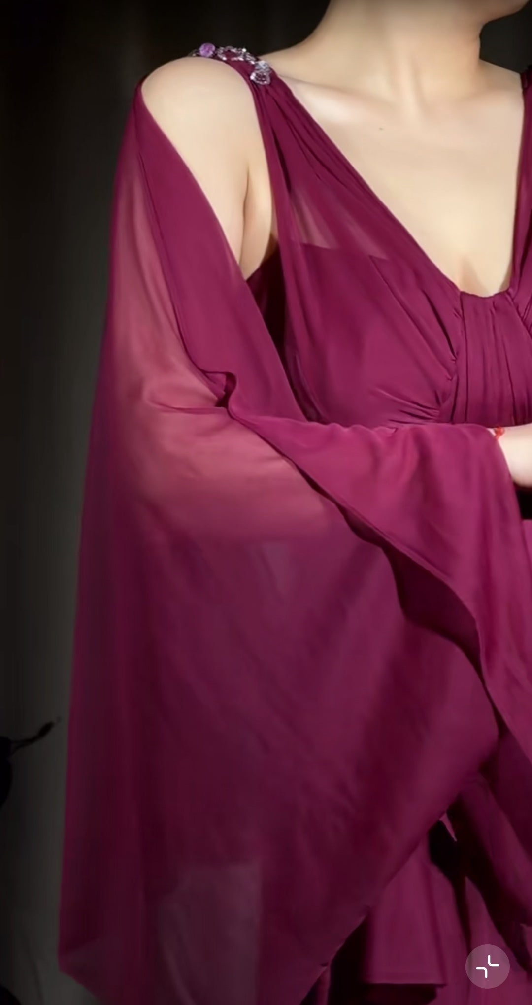 Elegant A-Line Grape V-neck Long Prom Dress Glam Sleeveless Chiffon Evening Dress ED01958