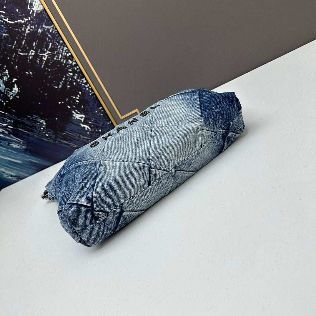 Chanel Large 22 Bag Faded Blue Denim Silver Hardware