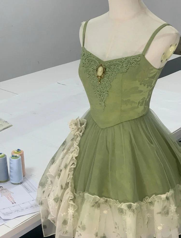 Fairytale Green Spaghetti Strap A-Line Printed Tulle Short Prom Dresses Homecoming Dress ED02408